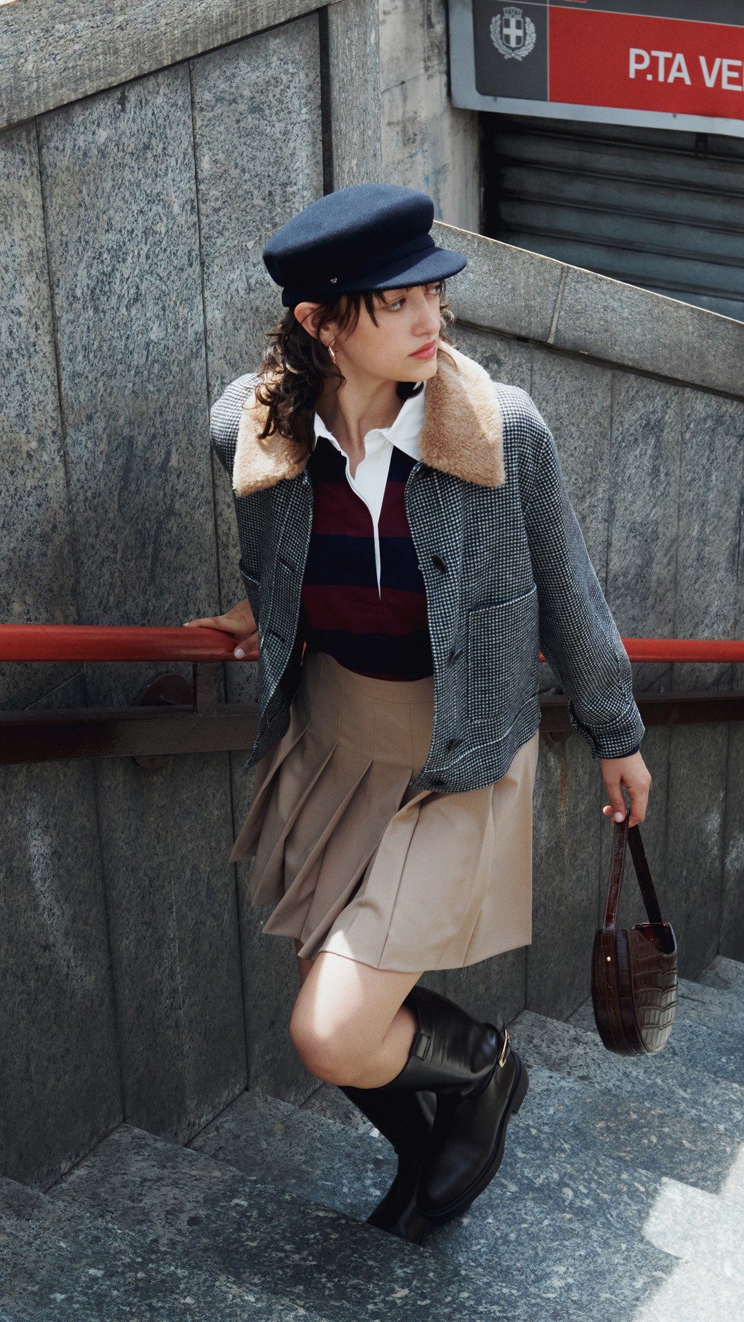 College style is the latest trend: the perfect blend of preppy elegance and a super-cool attitude. For a straight-A look, start with the basics: a pleated miniskirt paired with a striped polo.