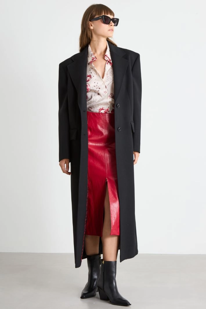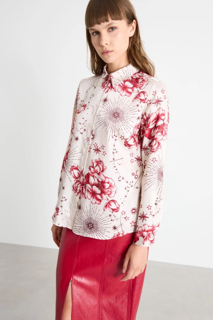 Flowing shirt in all-over printed twill, with classic collar, long sleeves with cuff and button, and visible button fastening.