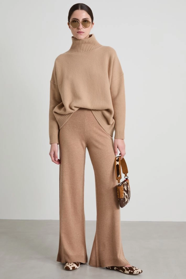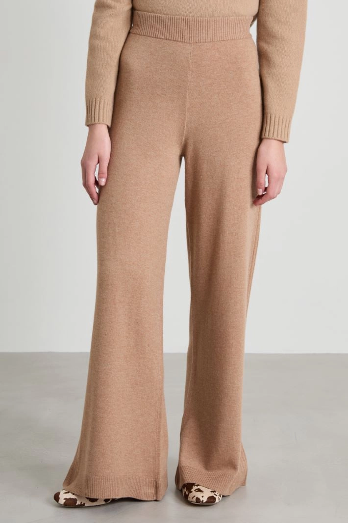 Wide, straight-fit trousers in wool blend knit, with an elasticated waistband and flat-ribbed side bands.