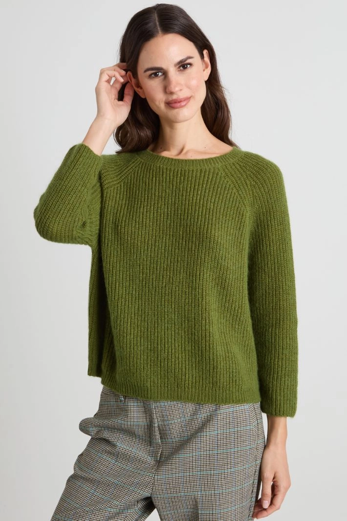 Loose-fit sweater in mohair blend yarn, with crew neck and long raglan sleeves.