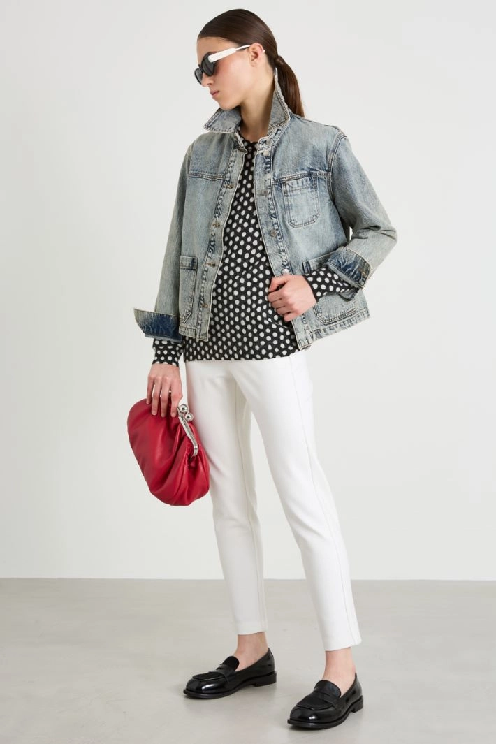 Semi-fitted sweater in wool and alpaca blend with an all-over print, round neckline and long sleeves featuring a ribbed motif.