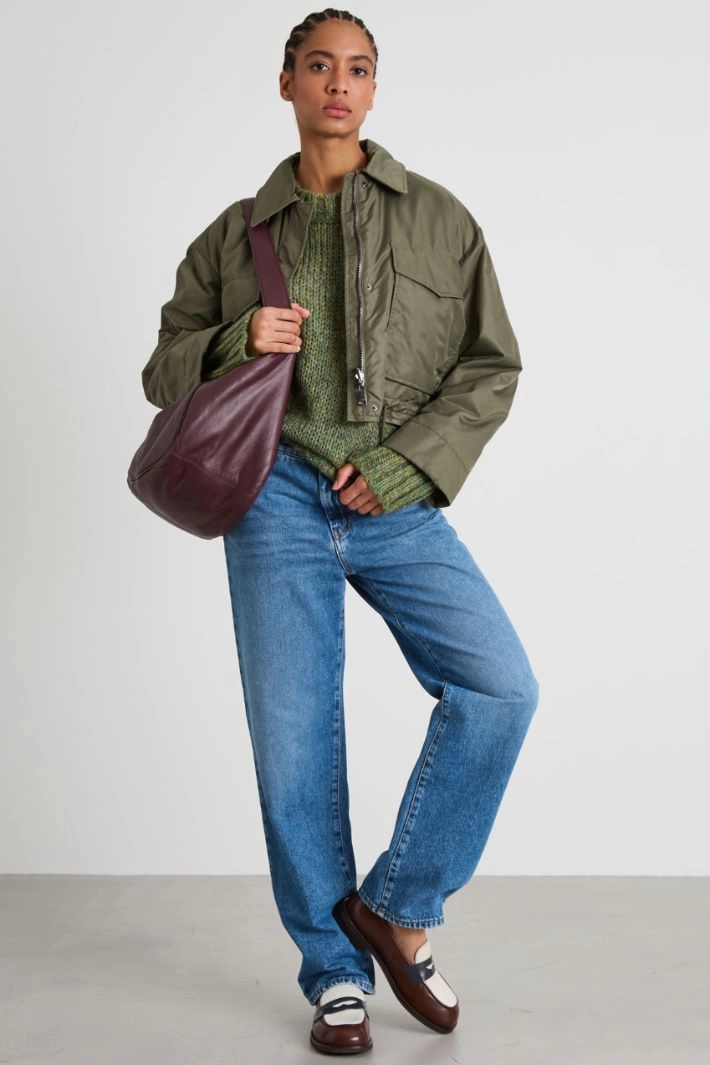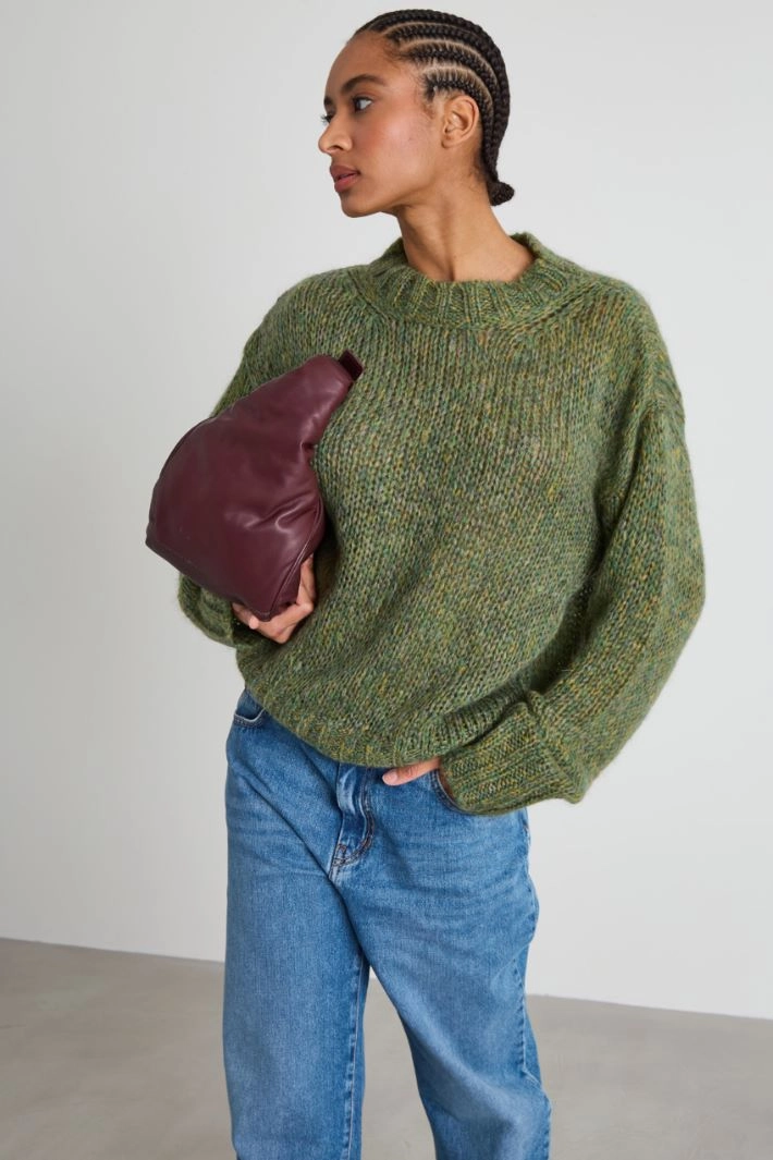 Regular-fit sweater in mohair blend yarn, with crew neck, long dropped sleeves and ribbed trim.