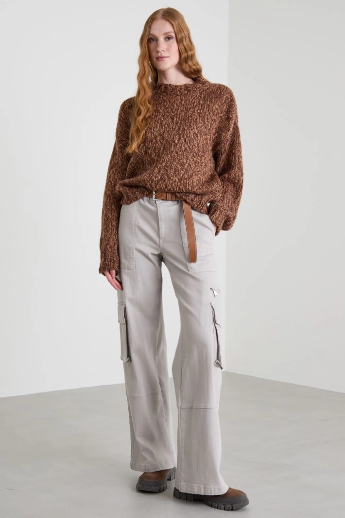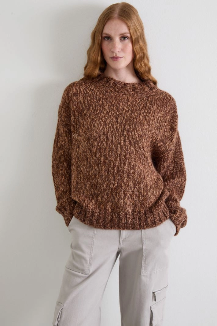 Regular-fit sweater in mohair blend yarn, with crew neck, long dropped sleeves and ribbed trim.