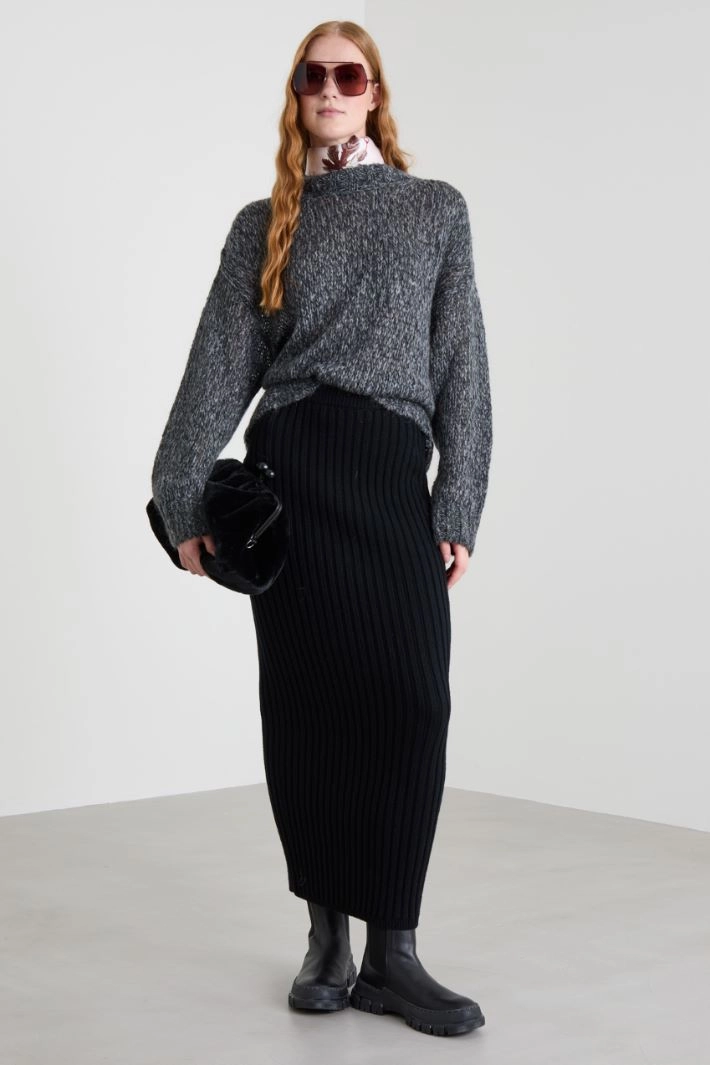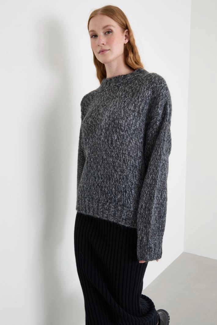Regular-fit sweater in mohair blend yarn, with crew neck, long dropped sleeves and ribbed trim.