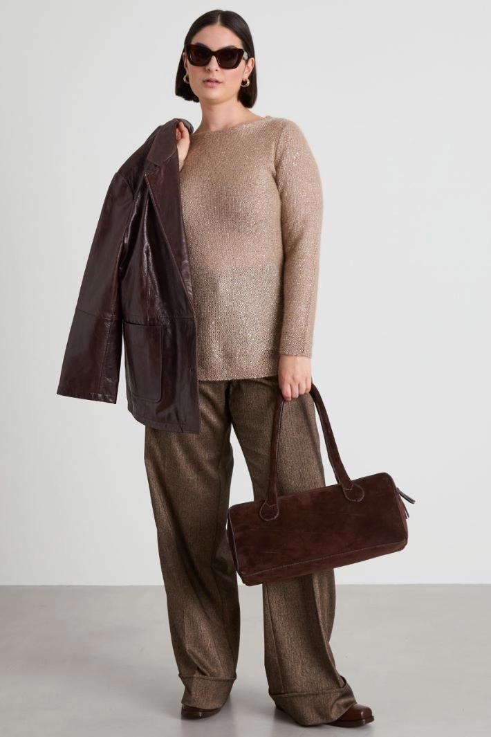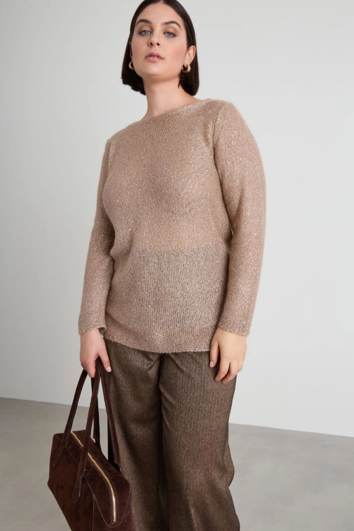 Oversized sweater in sequined yarn, crew neck, long sleeves and side slits at the hem.