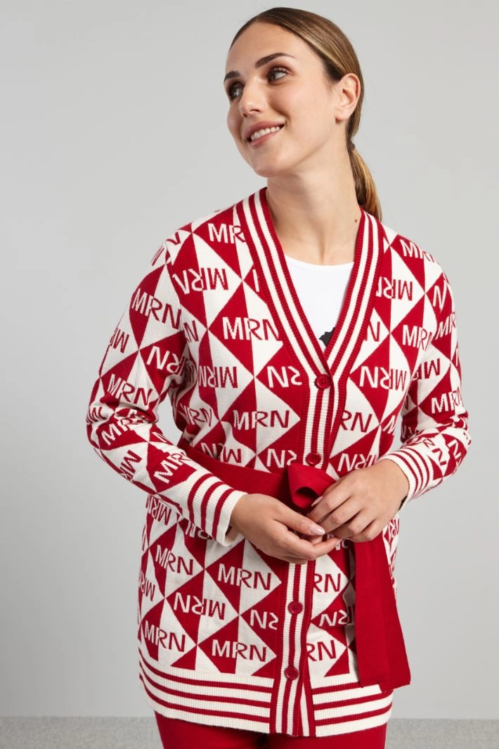 Jacquard cardigan with belt