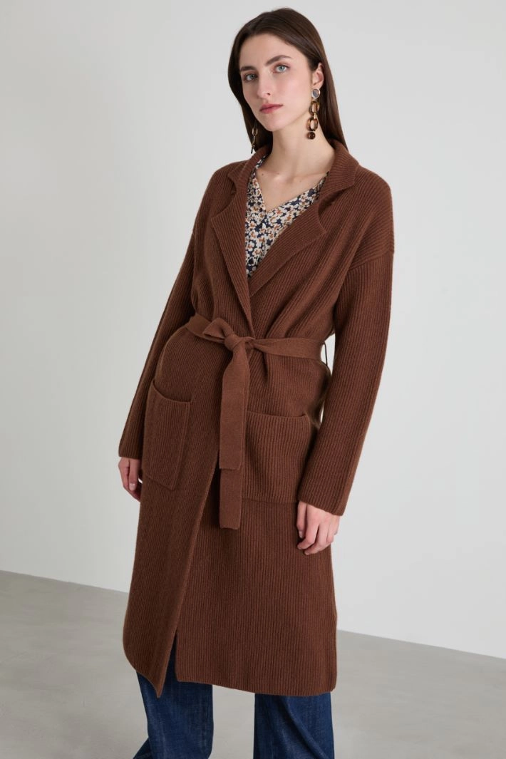 Knitted cardigan with belt