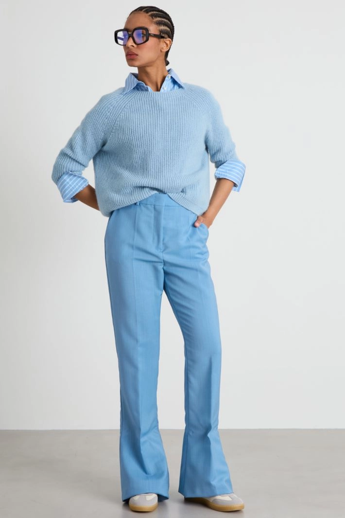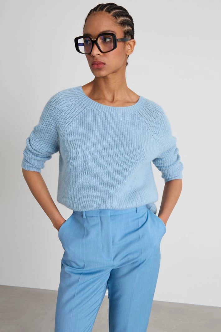 Regular-fit sweater in mohair blend yarn, with ribbed knit, crew neck and long raglan sleeves.