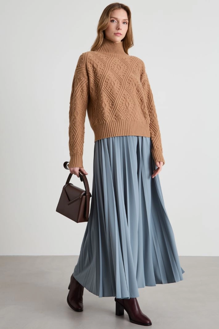 Regular-fit sweater in wool and cashmere yarn, with raised detailing on the front, high neck, long dropped sleeves and ribbed trim.