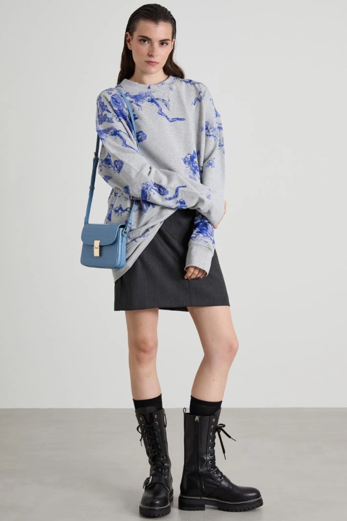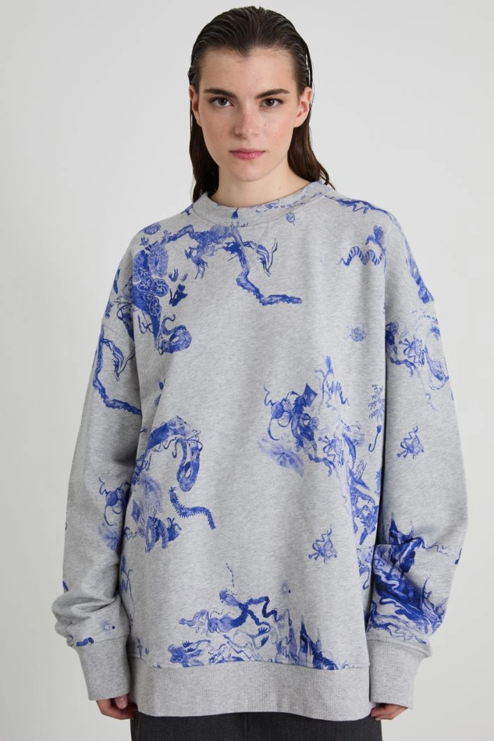 Long, oversized sweatshirt in heavy, pure cotton jersey with an all-over print, featuring a crew neck, long dropped sleeves and ribbed trims.