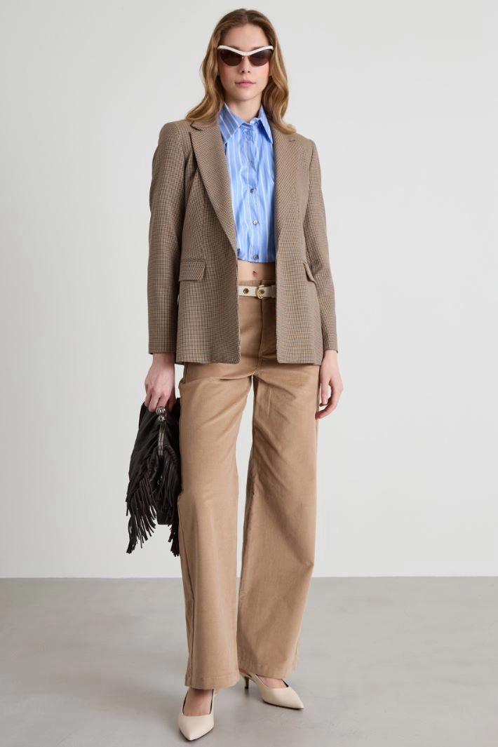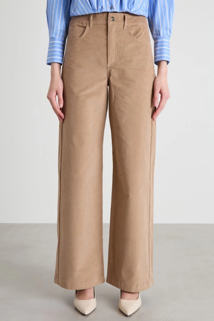 Straight, loose-fit trousers in stretch cotton corduroy, with belt loops, five pockets and fastening with a hidden zip and metal button.